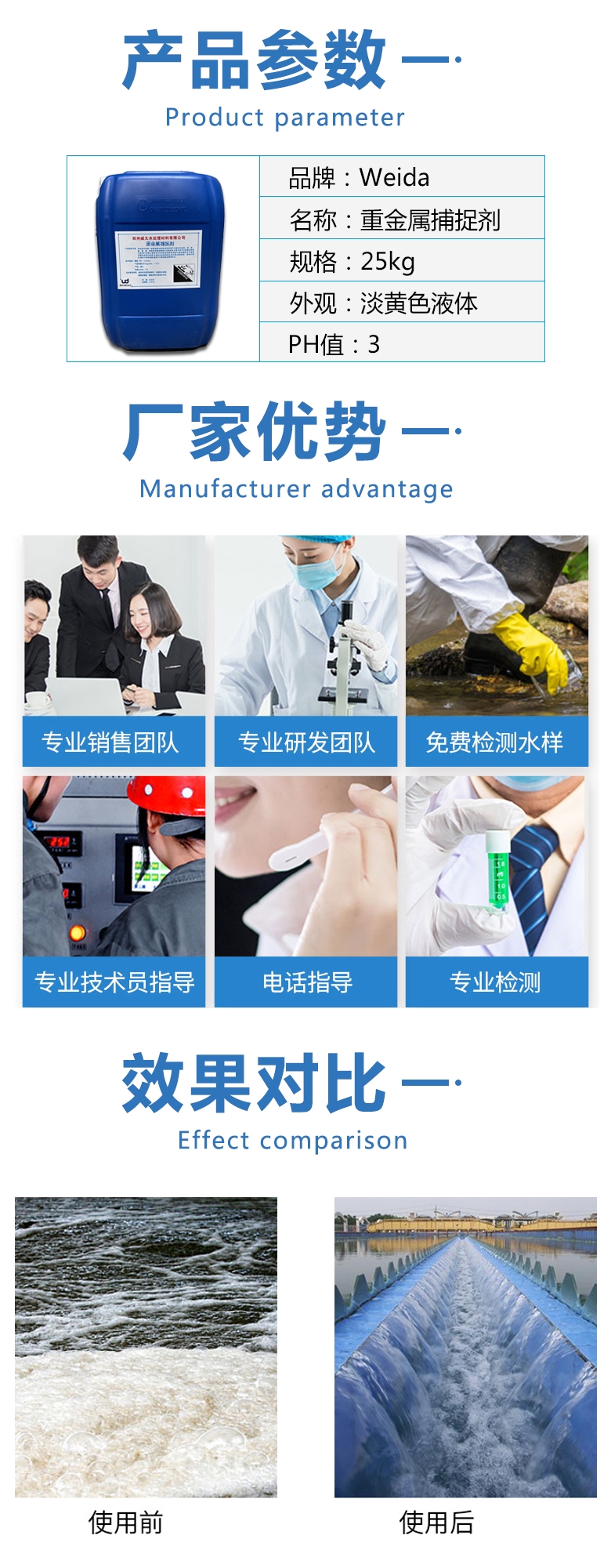 踏踏實實,弘揚匠人精神!兢兢業業,塑造民族品牌!感謝您關注威大水處理官網重金屬捕捉劑產品信息,也歡迎您提出寶貴的意見,共同推進中國制造的國際競爭力!對威大重金屬捕捉劑若有疑問的地方,請撥打威大技術工程師電話: